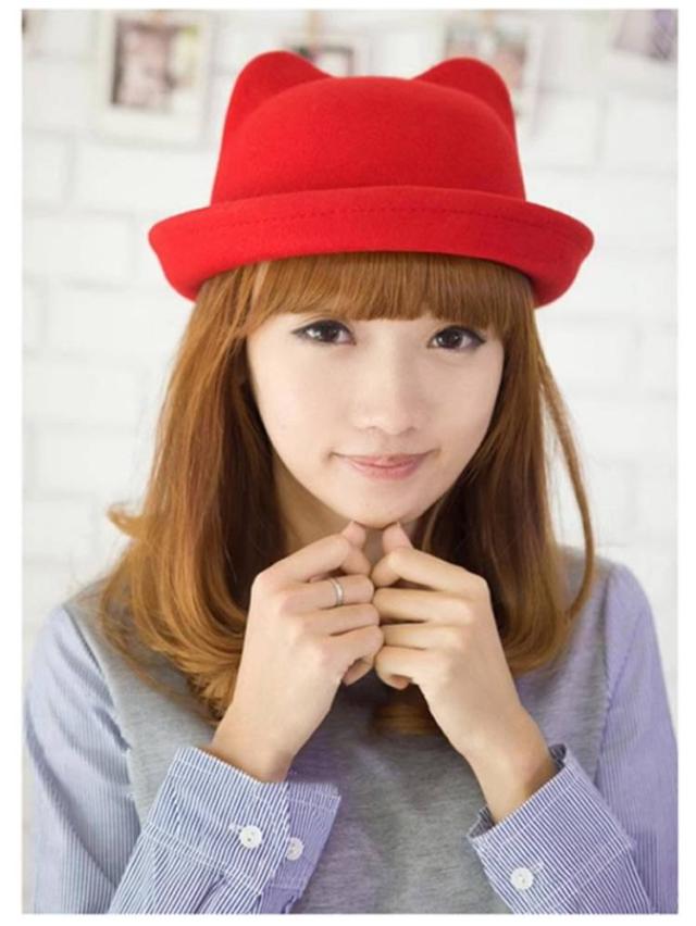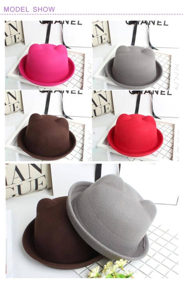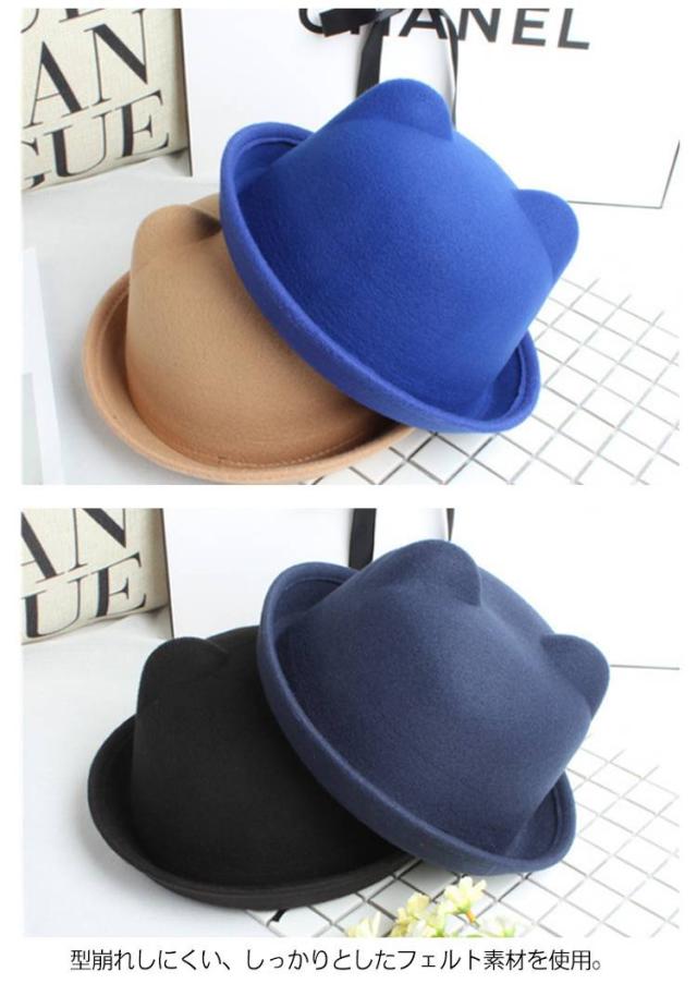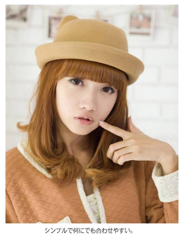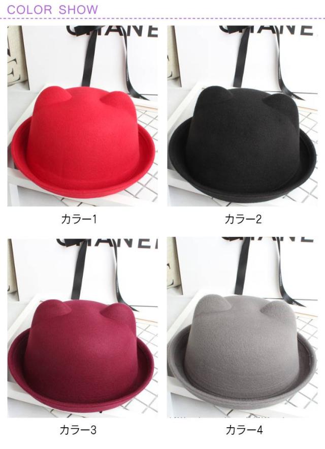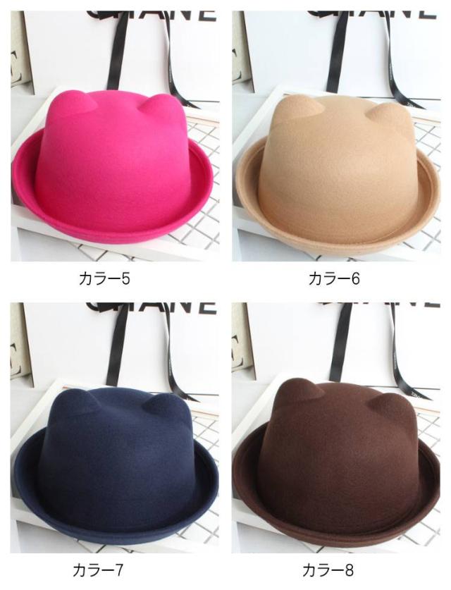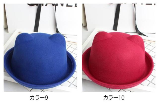 | 全10色、かわいい猫耳付きデザインボーラーハット! 子供〜大人までのサイズあり、親子コーデに最適! シンプルで何にでも合わせやすい。 型崩れしにくい、しっかりとしたフェルト素材を使用。 | |