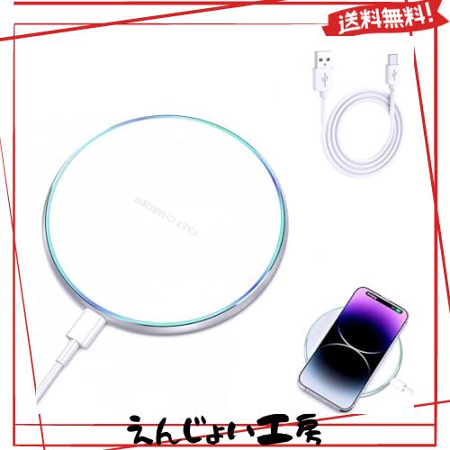 【2024超薄型】ワイヤレス充電器 Qi認証 無線充電器 最大15W出力 USB Type-Cポート ワイヤレス 充電 置く だけ 充電 i-Phone15/14/13/12