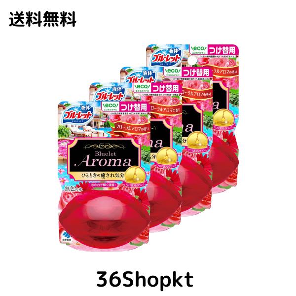 【まとめ買い】 液体ブルーレットアロマ 液体ブルーレットおくだけ トイレタンク芳香洗浄剤 フローラルアロマの香り 詰め替え用 70ml×4
