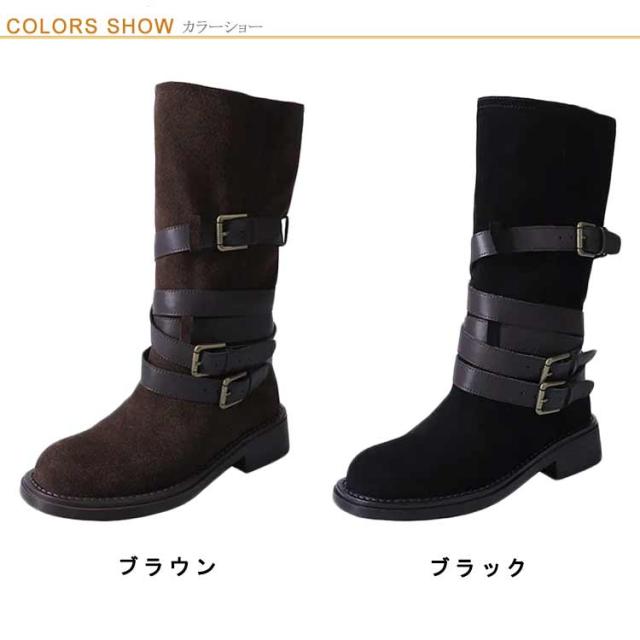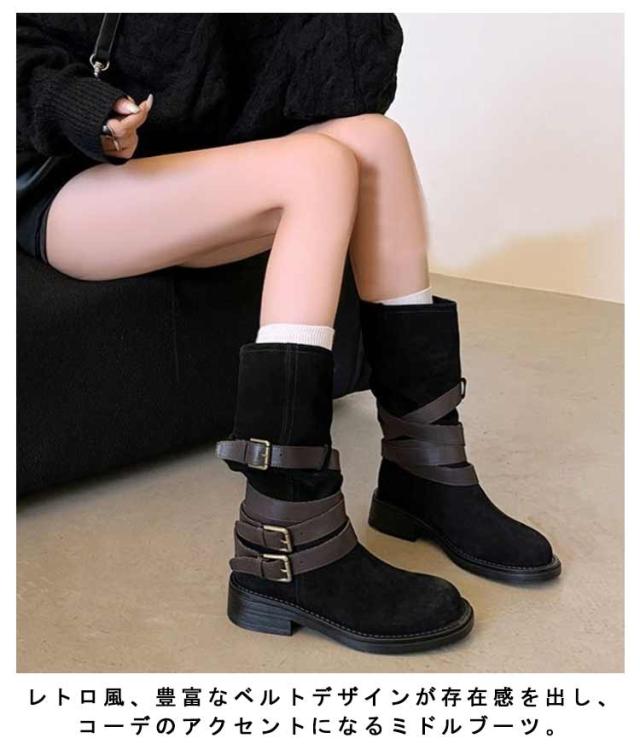 | レトロ風、豊富なベルトデザインが存在感を出し、 コーデのアクセントになるミドルブーツ。 履くだけでスマートな着こなしに! ショートパンツ/スカートなとボトムと好相性です。 | |