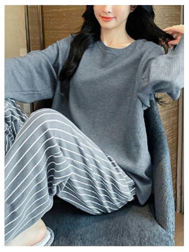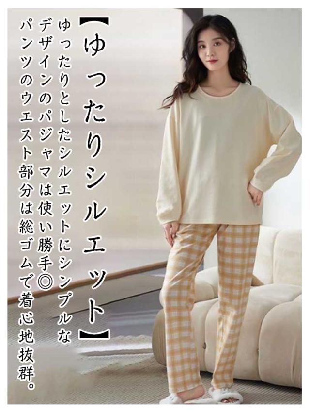 ルームウエア レディース トップス カップ付き 部屋着 おしゃれ ロングパンツ ルームウエア ゆったり 春秋冬 上下セット 柔らかい 長袖 パジャマ 可愛い 寝間着 寝巻き ナイトウェア チェック ストライプ 無地