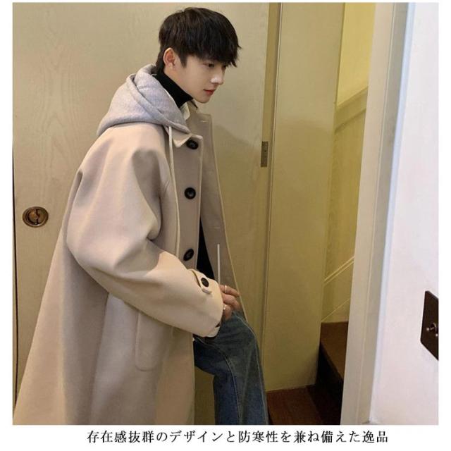 メンズ ロングコート フード付き ラシャコート チェスターコート 防寒防風 ロングコート ジャケット ウールコート チェスターコート ダッフルコート レンチシングルブレスト メンズ ロング ラシャジャケット ビジネス 秋冬物 秋冬春