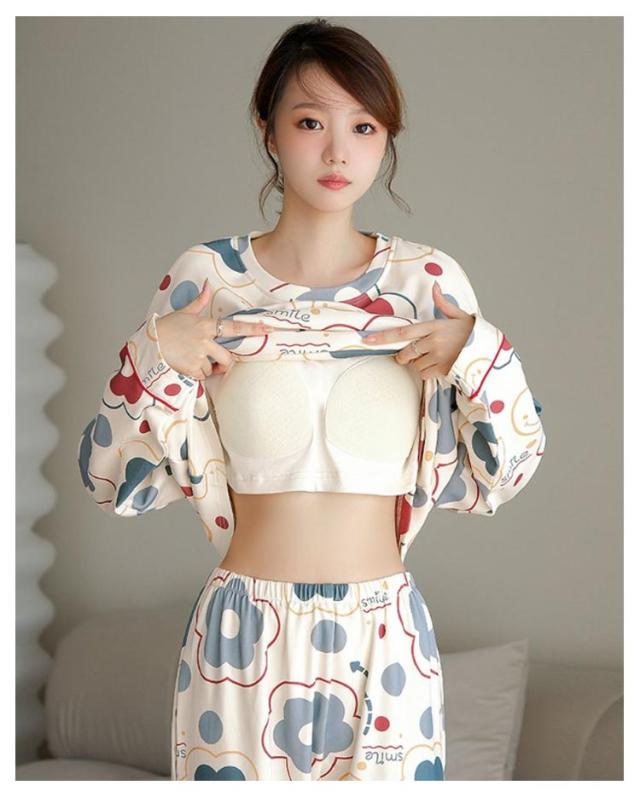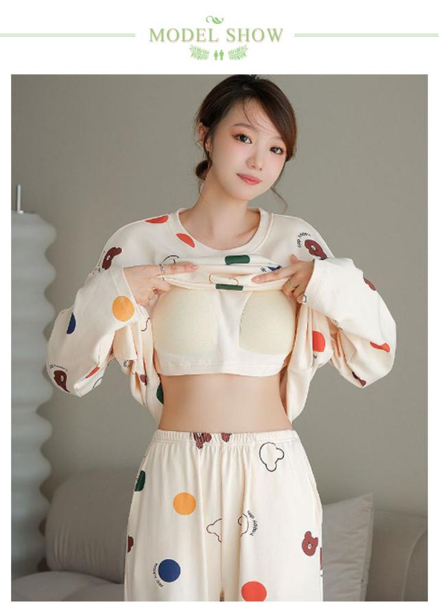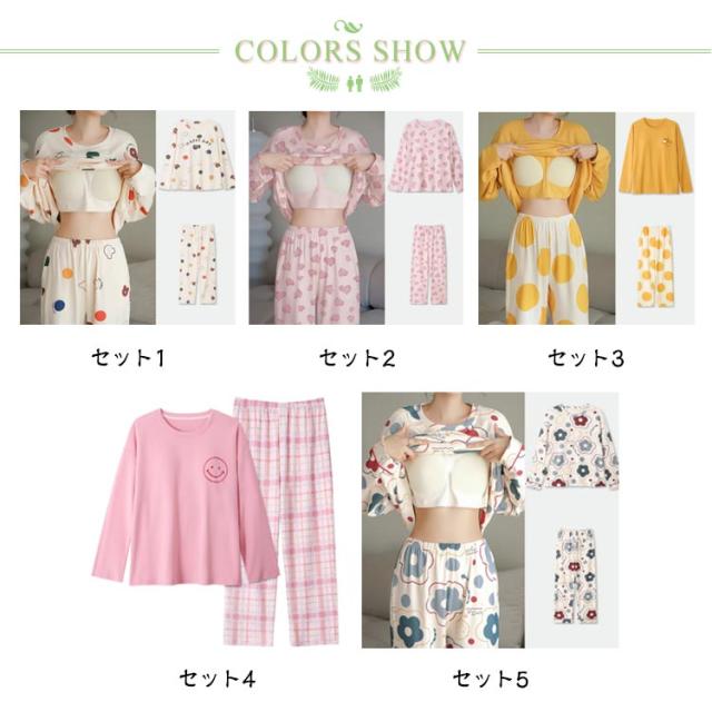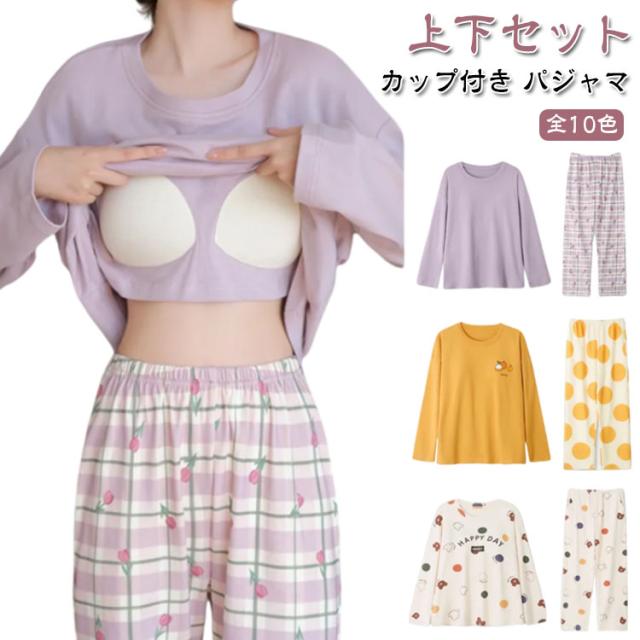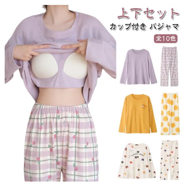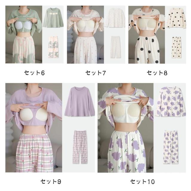入院 カップ付き 上下セット ルームウェア 部屋着 長袖 レディース 春 カップ付き セットアップ 寝巻き パジャマ ナイトウェア ホームウェア かわいい おしゃれ 旅行 着替え 秋冬 大人 学生 女子
