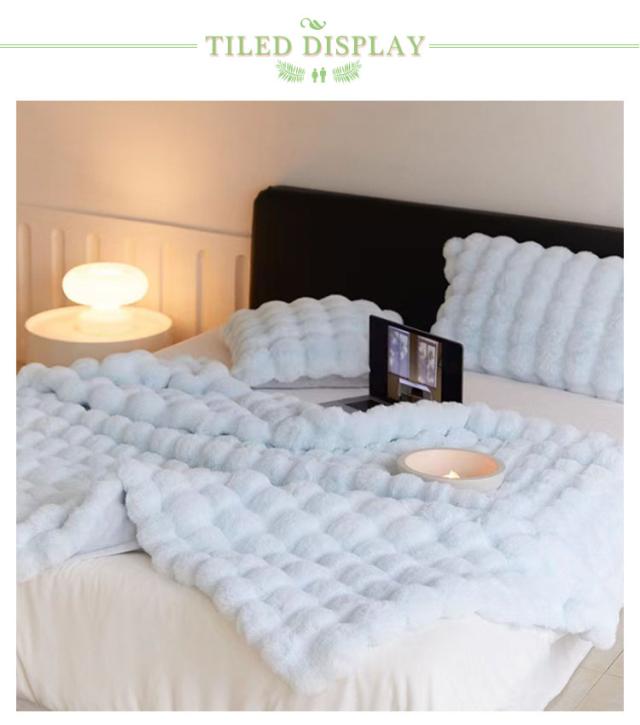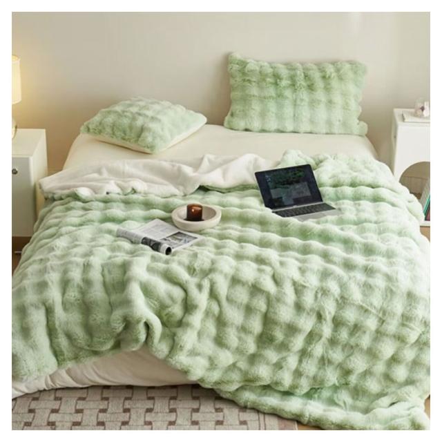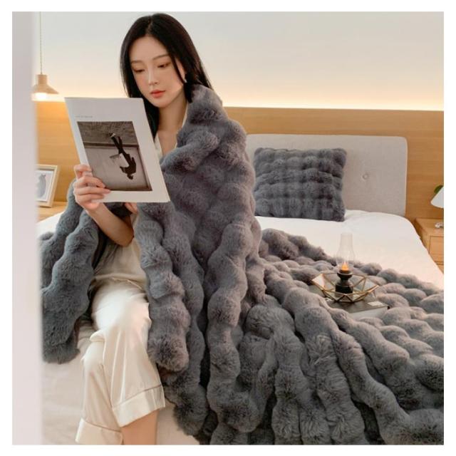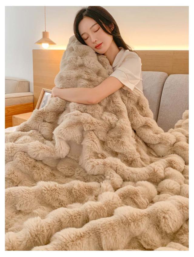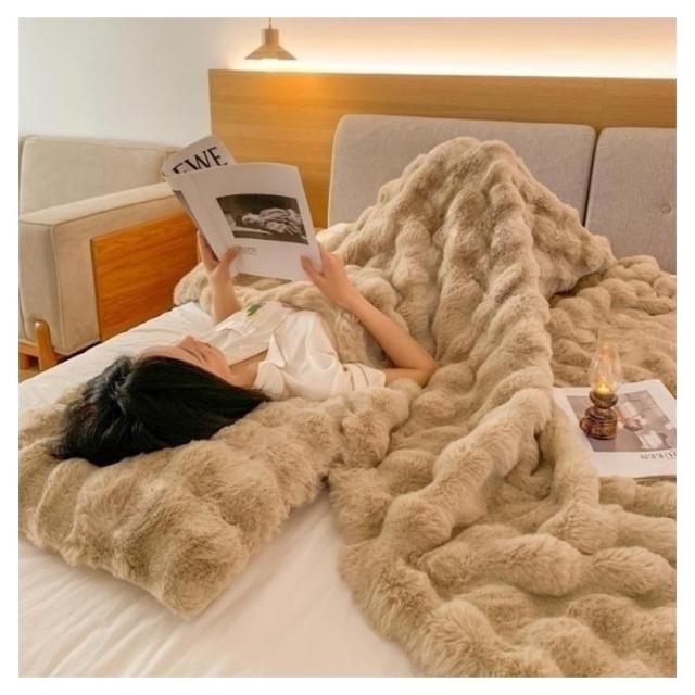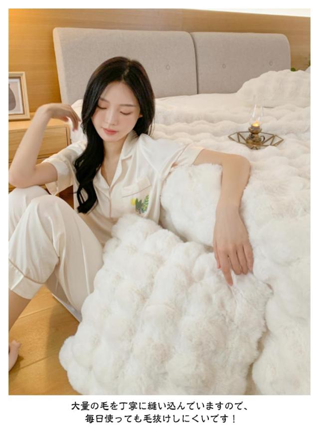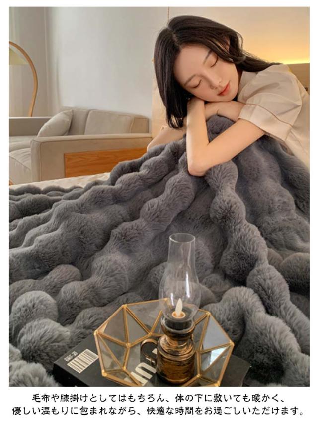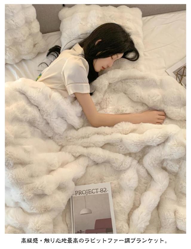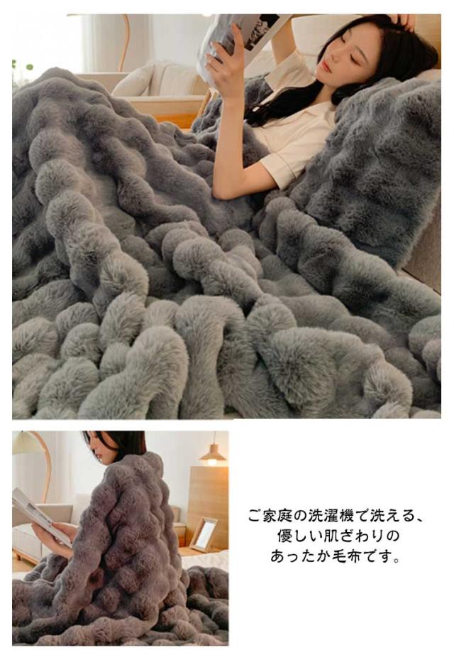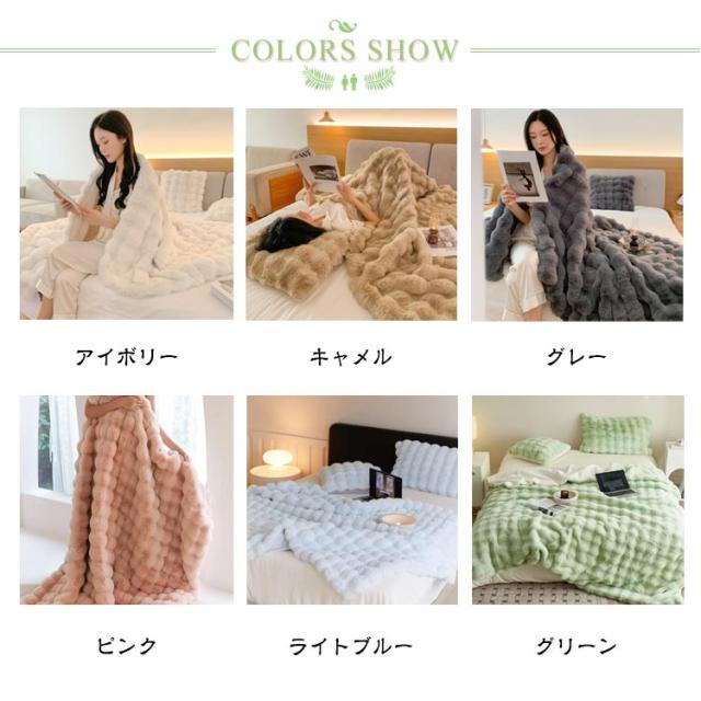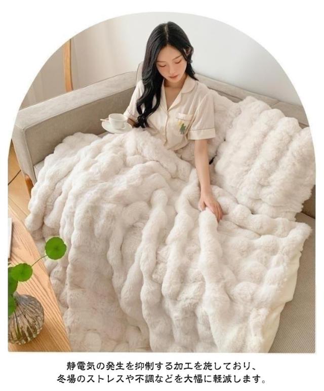| 【130×160CM】【ふわとろ毛布】【6色】 高級感・触り心地最高のラビットファー調ブランケット。 リアルファーのような高級感といつまでも触れていたいなめらかな肌ざわりが魅力。 A面は長毛、B面は短毛で、両面を合わせたデザインと断熱素材なので冷たい風をカットし暖かさが長続きします。 大量の毛を丁寧に縫い込んでいますので、毎日使っても毛抜けしにくいです! 静電気の発生を抑制する加工を施しており、冬場のストレスや不調などを大幅に軽減します。 毛布や膝掛けとしてはもちろん、体の下に敷いても暖かく、優しい温もりに包まれながら、快適な時間をお過ごしいただけます。 ご家庭の洗濯機で洗える、優しい肌ざわりのあったか毛布です。 | |