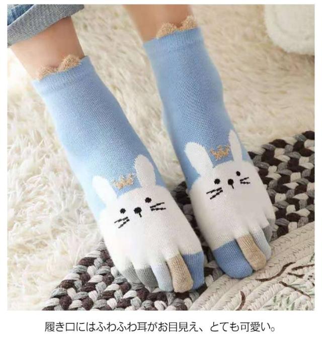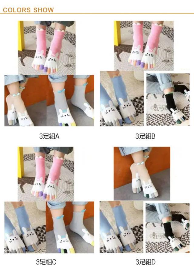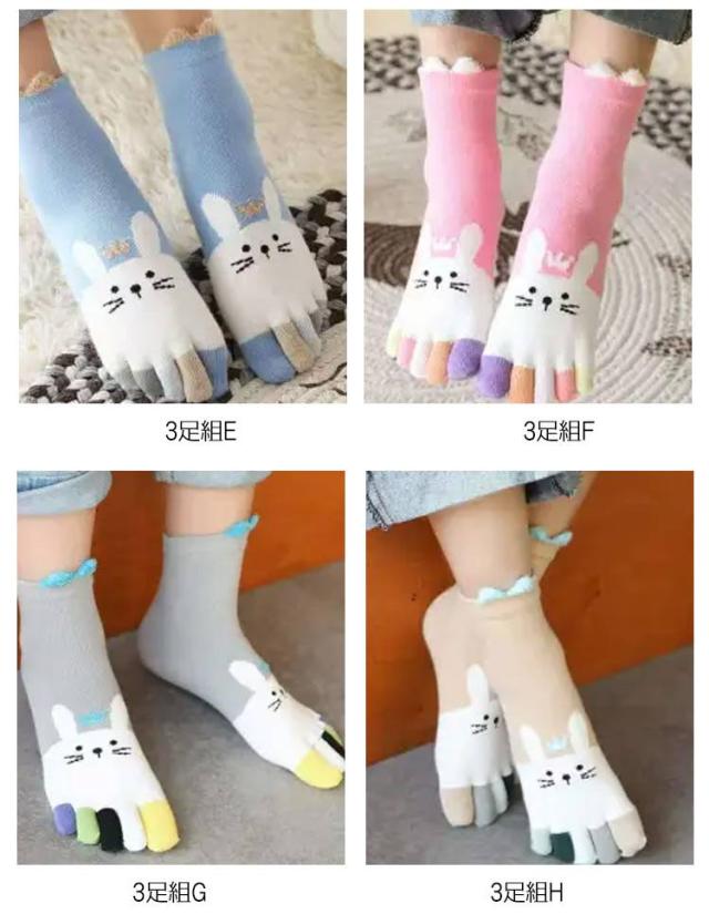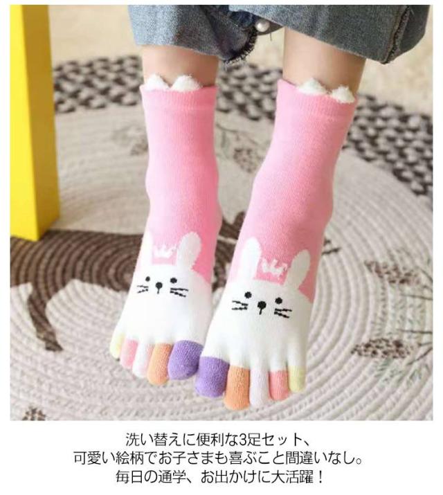 3足セット キッズ 5本指靴下 うさぎ 吸汗 可愛い 3足 女の子 クルー丈 送料無料 子供用 男の子 5本指ソックス おしゃれ 3足組 くつした 靴下 ショートソックス 送料無料 綿 コットン スポーツソックス 幼稚園 小学生 冷えとり 保温
