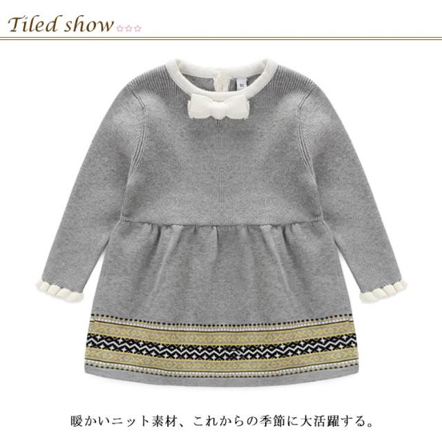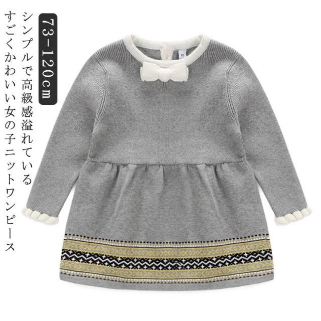 ニットワンピース クルーネック 女の子 ワンピース 春秋冬 女の子 入学式 ベビードレス ニットワンピ 秋物 リボン 長袖 上品 かわいい ベビー服 キッズ ベビー 祝い 子ども 春服 きれいめ 子供服 通園 可愛い ギフト プレゼント