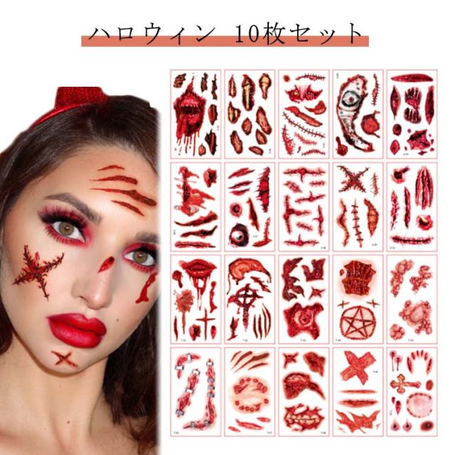 ハロウィン 10枚セット 顔 フェイス 送料無料 タトゥー 子供 ハロウィン ハロウィン タトゥー 特殊メイク 仮装 コスプレ ハロウィン フェイス アイメイク 顔 ボディーステッカー 小道具 ホラー