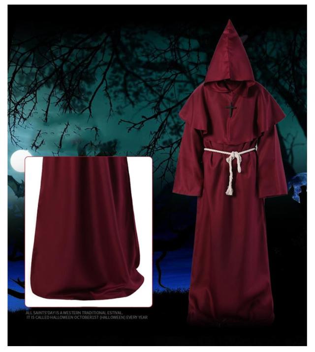 キッズ用 マント 十字架/クロスネックレス 子供 3点セット 魔法師 紐 衣装 ハロウィン ローブ 死神 巫女 中世 仮装 牧師 コスプレ 教団 大人 大人 ハロウィン 演出服 舞台 ステージ衣装 コスプレ衣装 僧侶 男の子 女の子 男性 女性