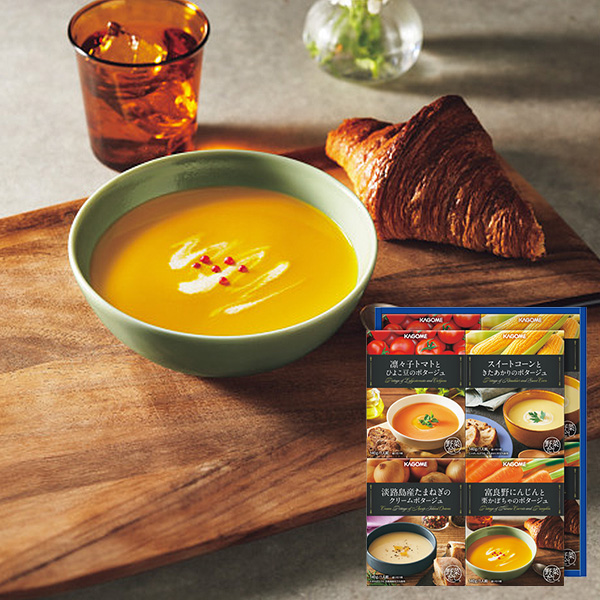 # カゴメ こだわり野菜を楽しむ プレミアムポタージュ ポタージュ スープ 食品 惣菜 おいしい 野菜 手軽 簡単 便利 朝食 軽食 小腹 小分け トマト にんじん かぼちゃ コーン じゃがいも たまねぎ 帰歳暮 歳暮 冬ギフト