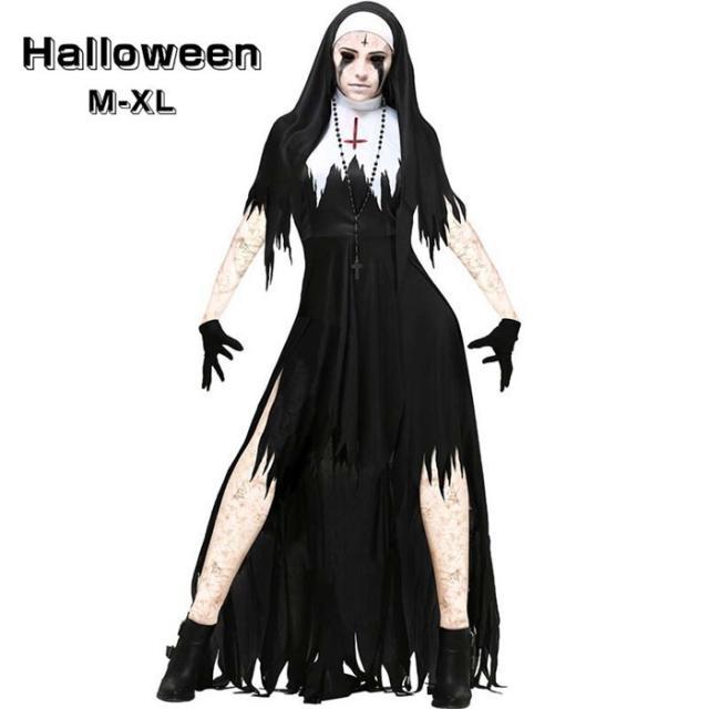 ハロウィン 衣装 修道女 仮装 コス コスプレ ハロウィン 衣装 聖女 牧師 宣教師 修道士 コスプレ衣装 シスターコス シスター 黒 レディース ワンピース コスチューム 大人 女性 ハロウィン衣装 ハロウィン仮装 d9112z7z7m5