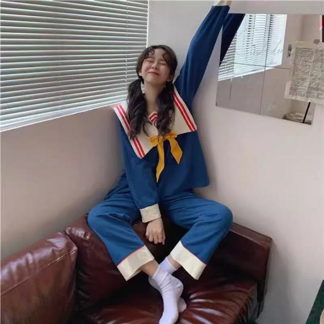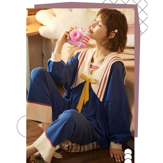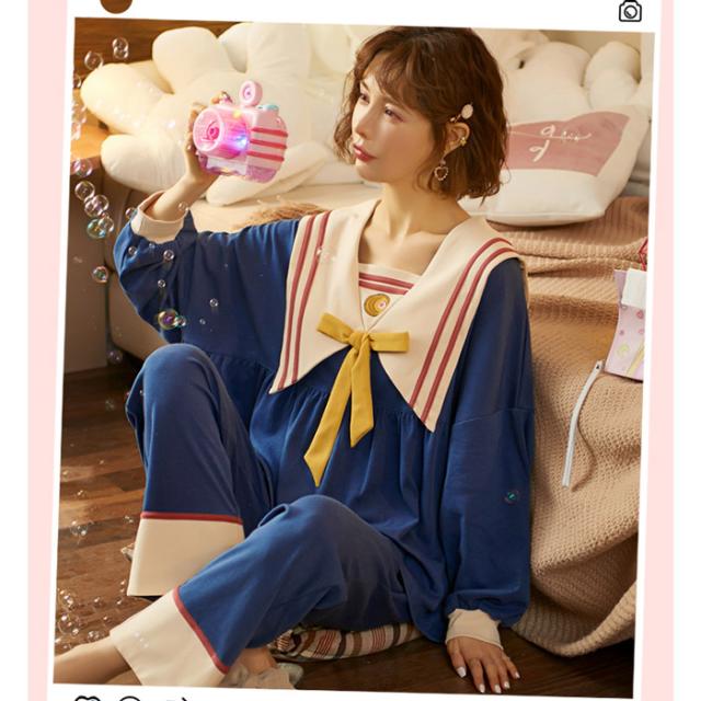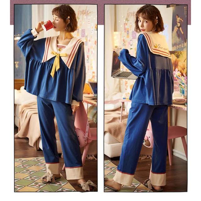 部屋着 パジャマ 上下セット 長袖 セーラー 寝間着 ポケット付き ルームウェア 春夏 コットン 女性 かわいい 大きいサイズ レディース 誕生日 ギフト 結婚祝い プレゼント dh298c0h5