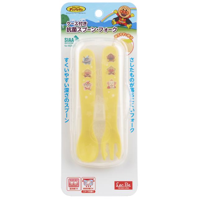 アンパンマン 抗菌 スプーン・フォーク ケース付き イエロー A00267 [食洗機 煮沸 キッズ向け 幼児用 レック]