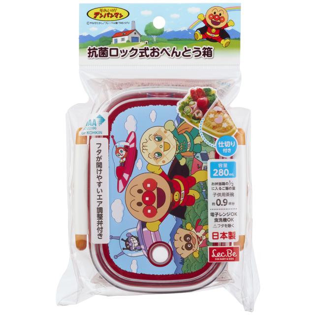 アンパンマン 抗菌 ロック式 おべんとう箱 280ml レッド 日本製 A00242 [お弁当箱 子供用 レンジ 食洗機 レック]