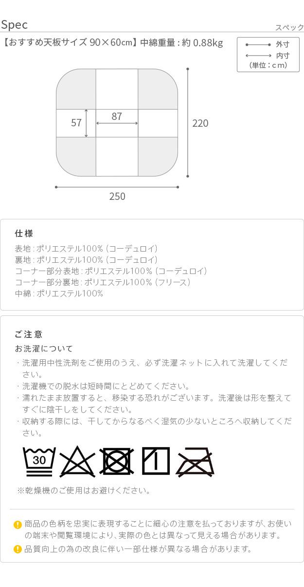 こたつ掛け布団単品 90x60cmこたつ用(250x220cm)リバーシブルコーデュロイ ダイニングこたつ 長方形 省スペース こたつ布団単品 保温 掛け布団
