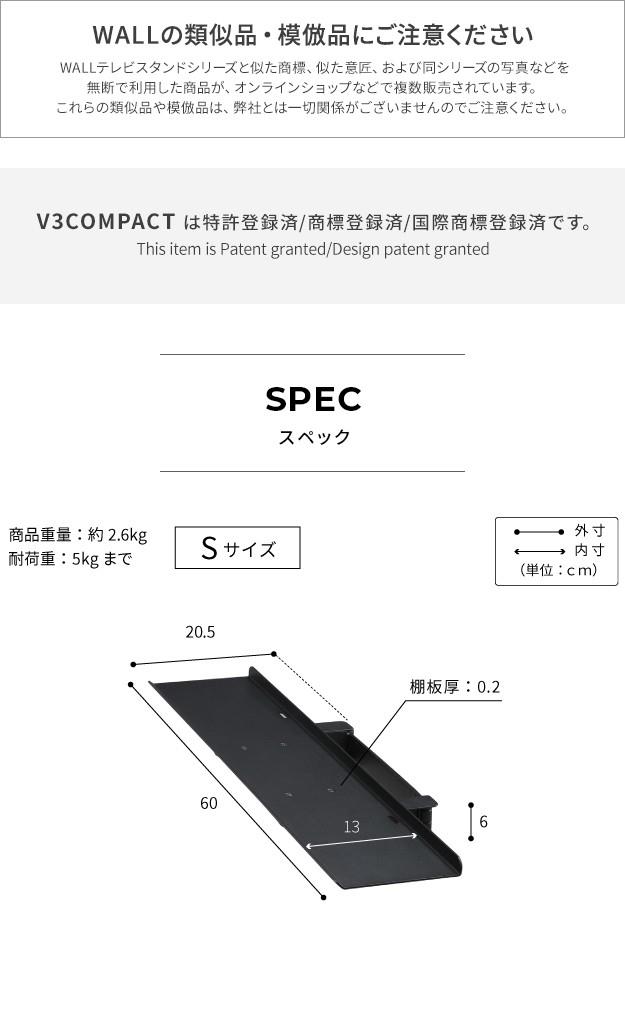 サウンドバー棚板 Sサイズ 幅60cm WALLインテリアテレビスタンドV3 COMPACT 専用 スチール製 ミニ コンパクト WALLオプションスピーカー EQUALS