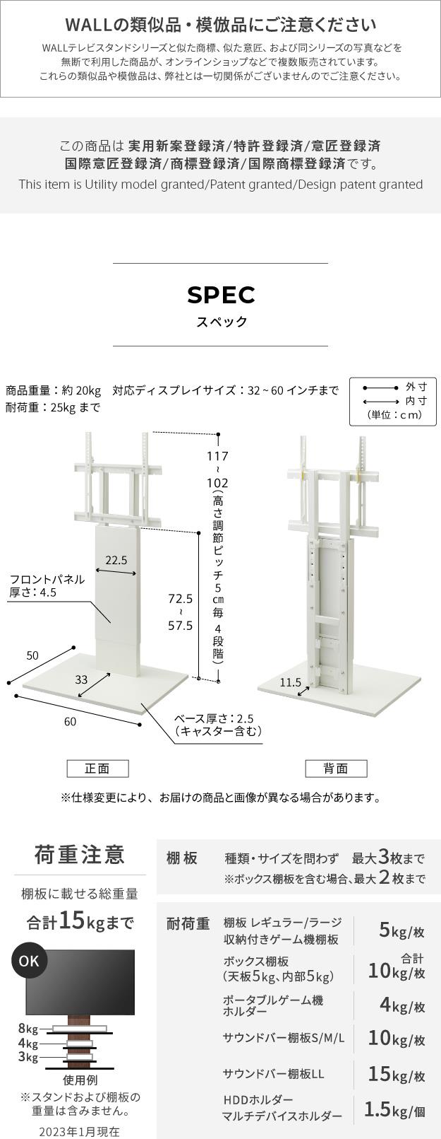 対応テレビサイズ:32インチ~60インチ(25kg相当)まで