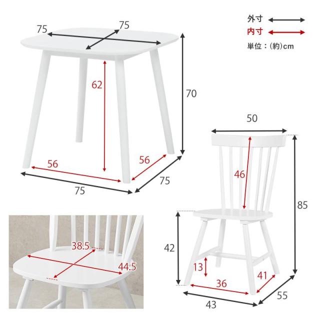 ダイニング3点セット ダイニング テーブル チェア2脚 3点セット 正方形 75×75 2人用 ダイニングテーブルセット 天然木 ダイニングチェア ウィンザーチェア 北欧 2人掛 新生活