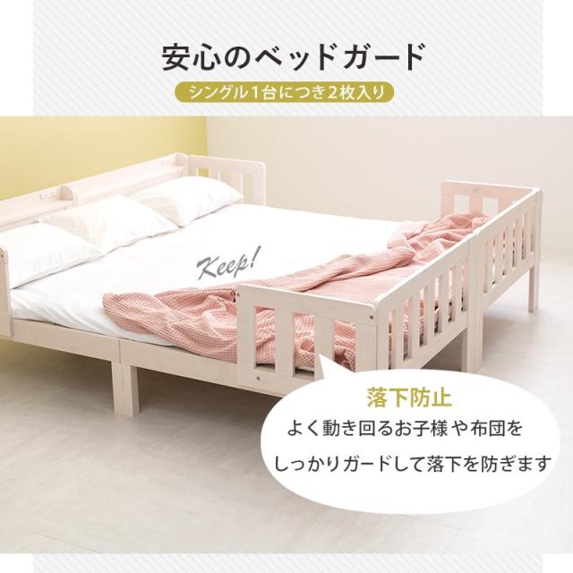 シングルベッド 2台組 連結可能 ベッド 木製 すのこベッド 床下収納 天然木 2口コンセント付き 宮棚 棚付き ベッドガード付き ベッドフレームのみ スノコ ベッドフレーム 寝室 一人暮らし 子供部屋 ロングサイズ MB-5064S2S