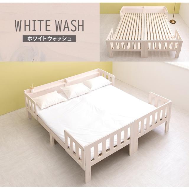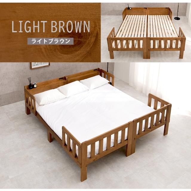 シングルベッド 2台組 連結可能 ベッド 木製 すのこベッド 床下収納 天然木 2口コンセント付き 棚付き ベッドフレームのみ スノコ ベッドフレーム 寝室 一人暮らし