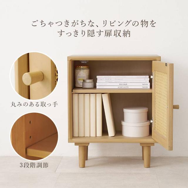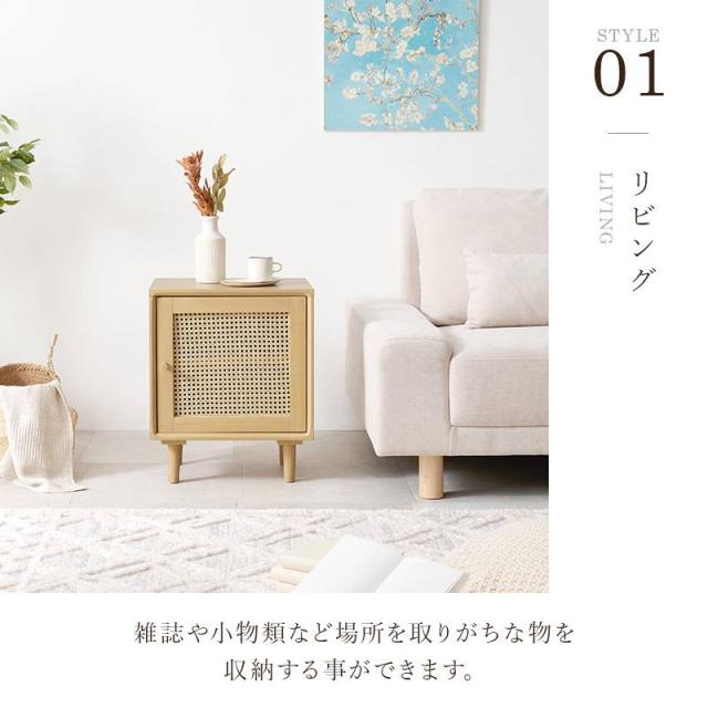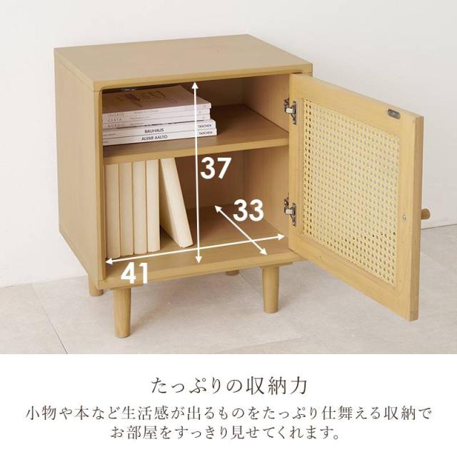 サイドテーブル ナイトテーブル ソファーサイドテーブル 収納棚 キャビネット チェスト脚付き 幅45cm ラタン かごめ編み 木目 ナチュラル 天然木 木製 コンパクト RT-1242