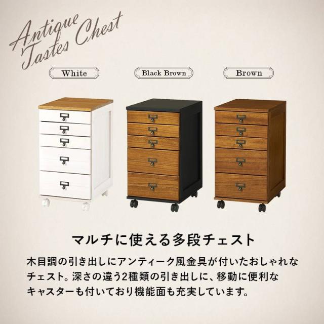 チェスト 5段 多段チェスト 木製 キャスター付き 幅33cm 奥行43.5cm 高さ60cm 天然木 デスクワゴン 引出し B4サイズ キャビネット 収納 北欧 MCH-6470