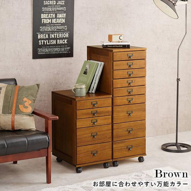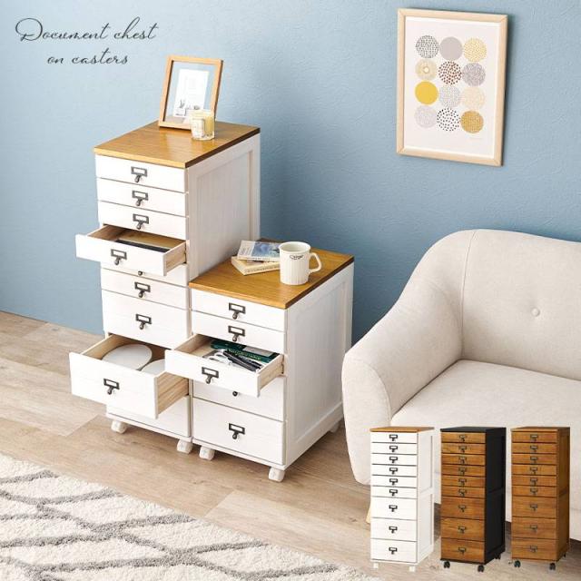 チェスト 9段 多段チェスト 木製 キャスター付き 幅33cm 奥行43.5cm 高さ97cm 天然木 デスクワゴン 引出し B4サイズ キャビネット 収納 北欧 MCH-64701