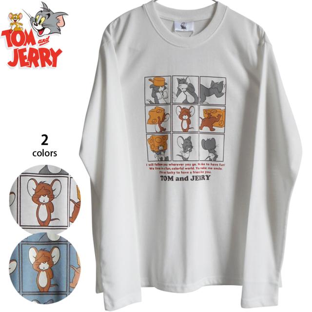 送料無料 トムとジェリー ジェリー タフィー トム ニブルス メンズ 長袖Tシャツ ロンT 9コマ アメコミ コミカル 目かくし チーズ マンガ 赤ちゃんねずみ レディース オーバーサイズ ゆったり ペアルック くすみカラー 白 ブルー グレー 大人