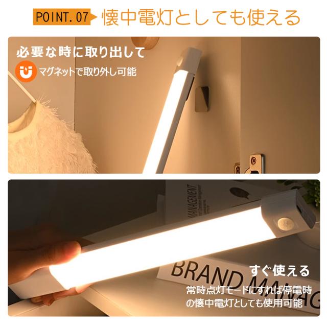 *常時点灯モードをオンにして、停電や災害時の緊急時には屋外で懐中電灯としても使用できます。さまざまな用途やシーンに対応するため、高い実用性を持っています。また、マグネット式でどの場所にも簡単に取り付けられ、安心安全なLEDセンサーライトです。