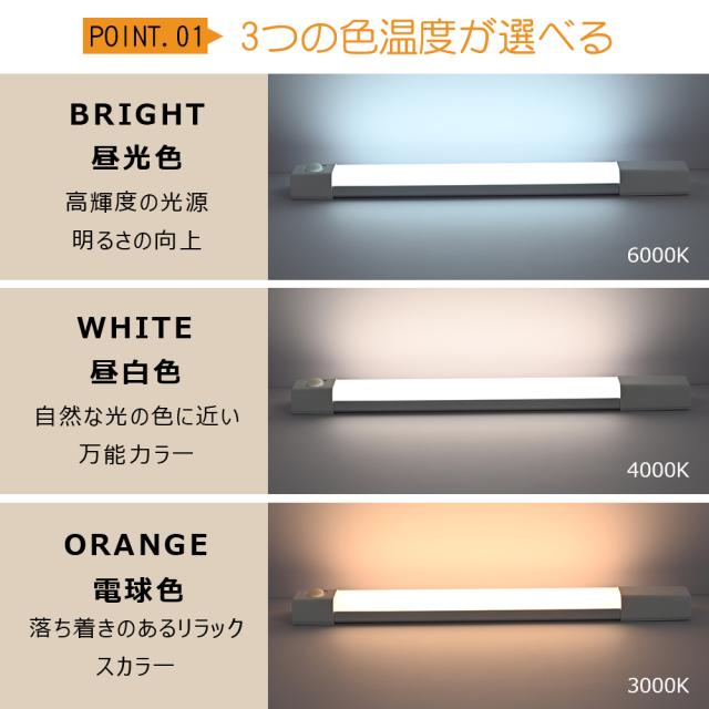 キッチンライトとして、これなら電気の消し忘れの心配もなくなります。3つの色温度から選べ、明るさも調整でき、汎用性に優れています。科学的ともに省エネのセンサーライトです。