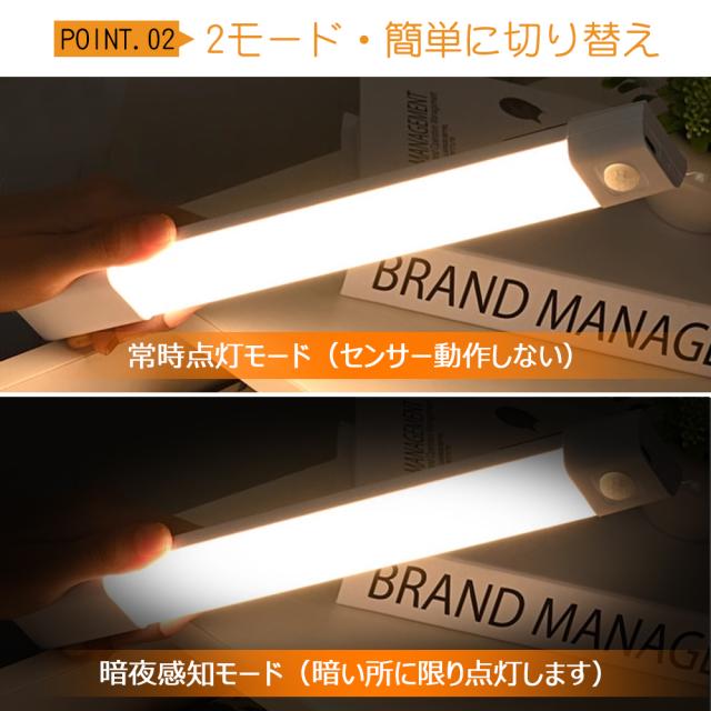 マルチLEDセンサーライトとして、使用前の準備や難しいメンテナンスをする必要がなく、片手で簡単に機能切替ボタンを押すだけで、常時点灯モード、と暗夜感知モードの2モードをすばやく切り替えることができます。