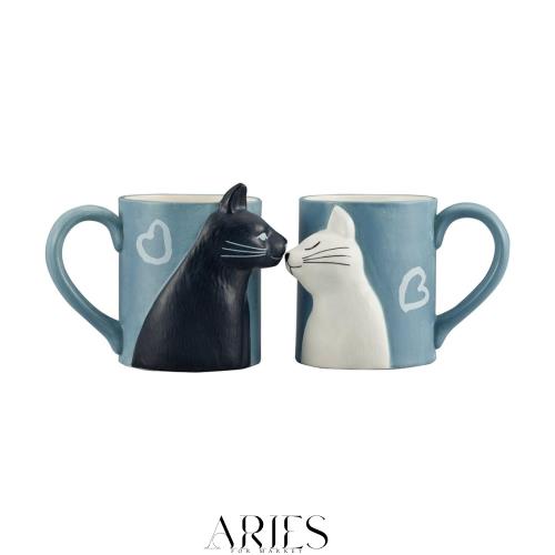スタイル:黒ねこと白ねこ かわいいネコのペアカップぴたりと、くっつけるとキスをします