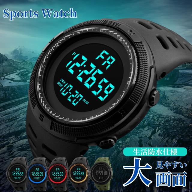 腕時計 デジタル メンズ レディース 大画面 デジタル腕時計 アラーム 防水 安い ベルト スポーツ 文字が見やすい スポーツウォッチ ストップウォッチ 秒針 ブラック シンプル ライト