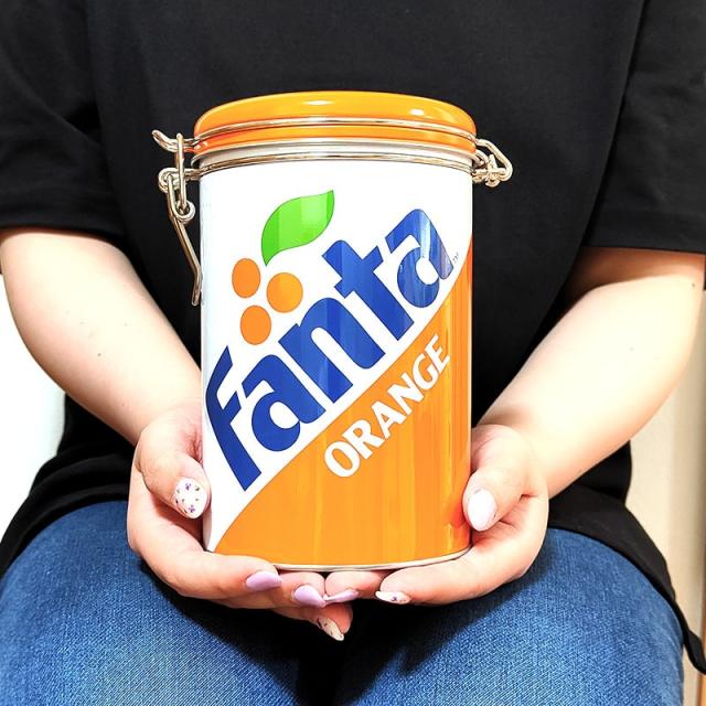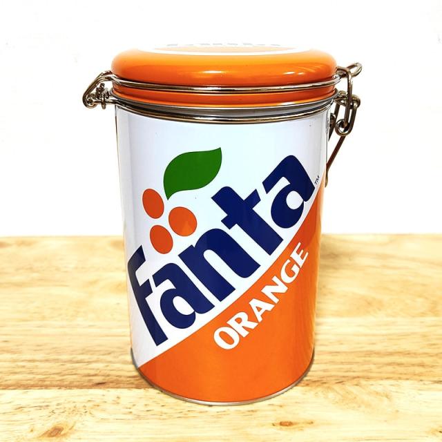 ファンタオレンジのロゴが入った丸型のキャニスターです。