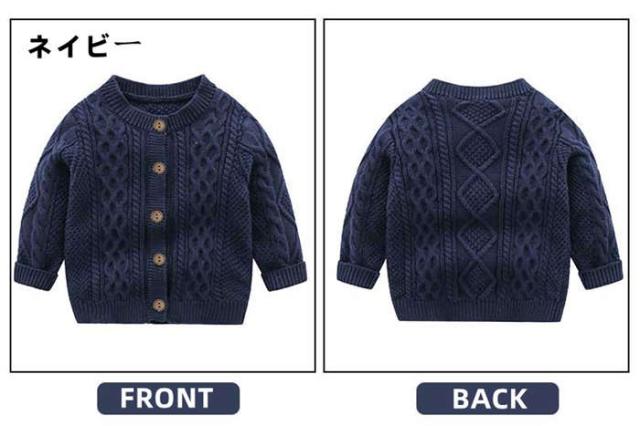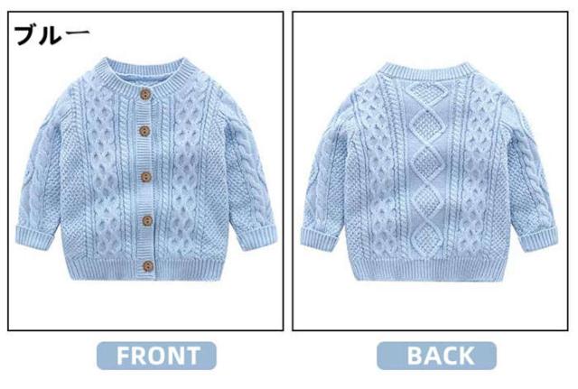 商品名:キッズカーディガン ニットカーディガン 男の子 ニットセーター ケーブル編み カーディガン 女の子 ベビー服 おしゃれ 子供セーター クルーネック かわいい 無地 ジュニア 子ども服 子供服 トップス 長袖 丸首 羽織 秋冬 通園 通学 幼稚園 小学生66cm 73cm 80cm 90cm 100cm