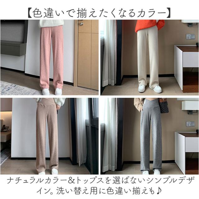マタニティ ワイドパンツ 通販 マタニティパンツ リブ ワイド パンツ ズボン ロングパンツ 長ズボン レディース 厚手 春 秋冬 部屋着 ルームウェア 産前 産後 妊婦 入院