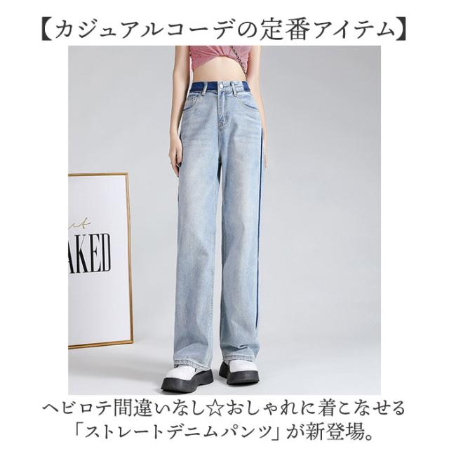 ストレート デニムパンツ ハイウエスト 通販 ストレートパンツ デニム パンツ ストレートデニムパンツ ハイウエストパンツ ジーンズ ジーパン ロングパンツ 長ズボン ズボン
