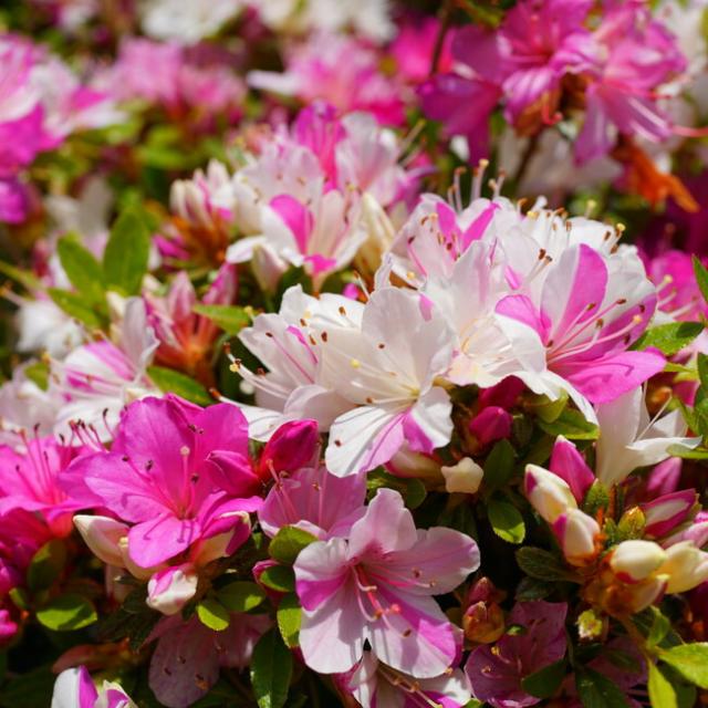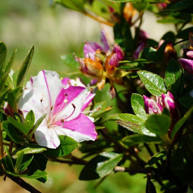 小さめの花が愛らしい絞りのキリシマツツジ。