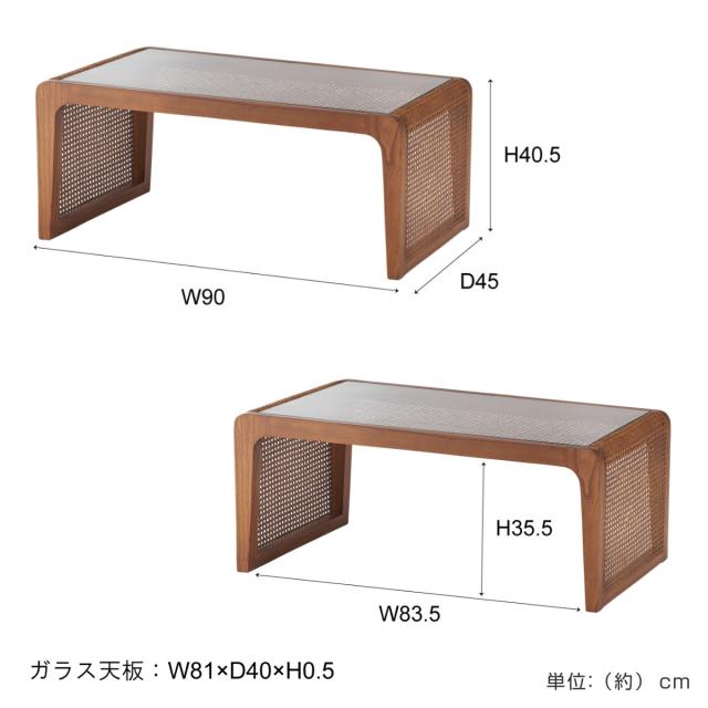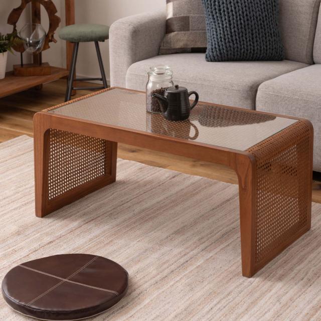 センターテーブル 幅90cm ガラステーブル ラタン ( 机 リビング カフェテーブル リビングテーブル 籐 籐編み 籐製 かごめ ローテーブル 木製 ナチュラル おしゃれ 完成品 天然素材 )