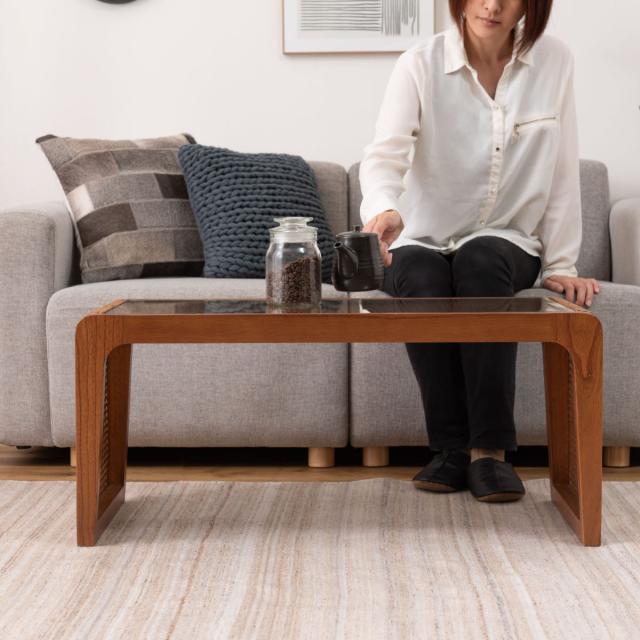 ソファに座って使用するのに丁度良い高さです。もちろん床に座っても使いやすい高さなので、食事や作業など自分に合ったスタイルでお使いいただけます。
