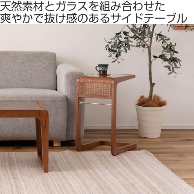 サイドテーブル 高さ55cm ガラステーブル ラタン ( 机 リビング カフェテーブル リビングテーブル 籐 籐編み 籐製 かごめ ミニテーブル 木製 ナチュラル おしゃれ 完成品 天然素材 )