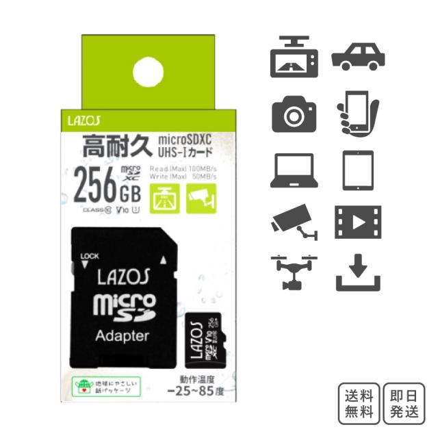 Lazos 高耐久microSDXCメモリーカード 256GB CLASS10相当 UHS:UHS-I U3 ビデオ:V10 |