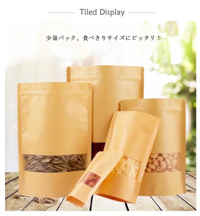 | 中身が見える窓付き・チャック付クラフト袋です。9×14cm 10×15cm 型崩れしにくく綺麗な陳列が出来ます。 少量パック、食べきりサイズにピッタリ! 封入口にチャックを設けた紙袋です。 ワンタッチで密封できるので、ホコリや汚れの進入を防止でき、大変衛生的です。 広口設計だから簡単に出し入れができます。 また、繰り返し開閉できるため、頻繁に開封するような用途にも使えます。 | |