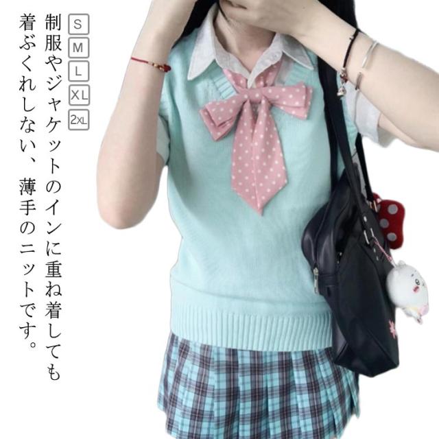 スクールベスト 女子 学生 制服 ニット ベスト Vネック ニットベスト チョッキ オールシーズン ノースリーブ 無地 通学用 キッズ 男子 男女兼用 春夏 秋冬 スクールセーター 水色 ブルー