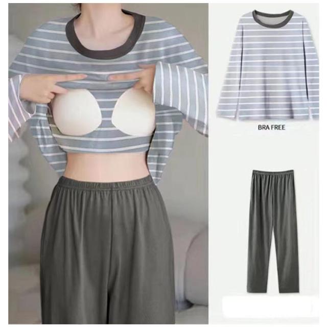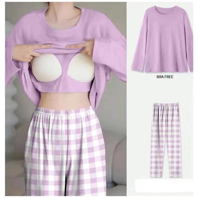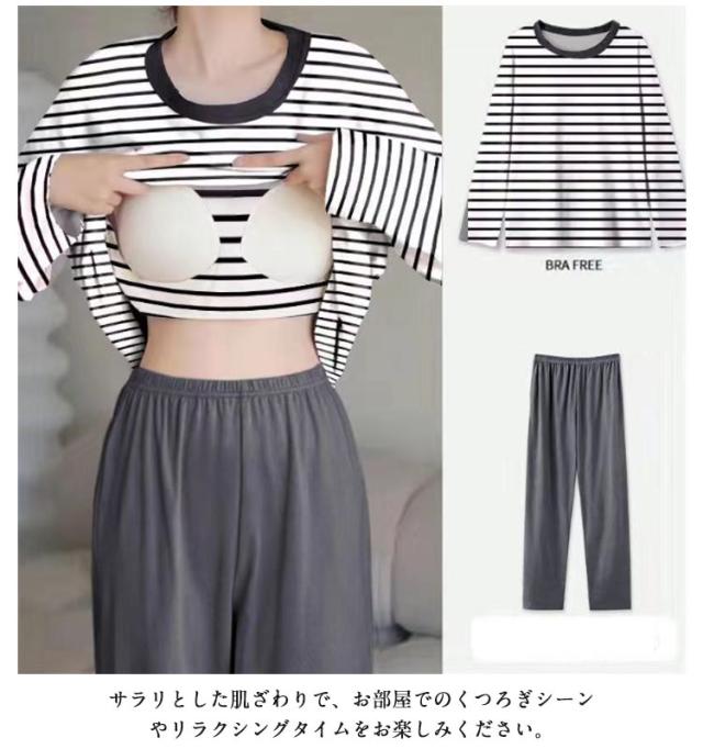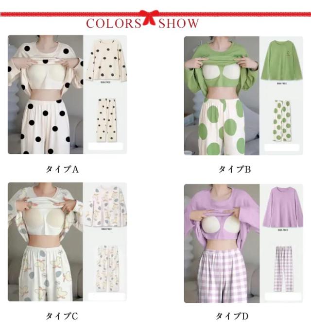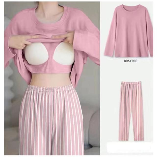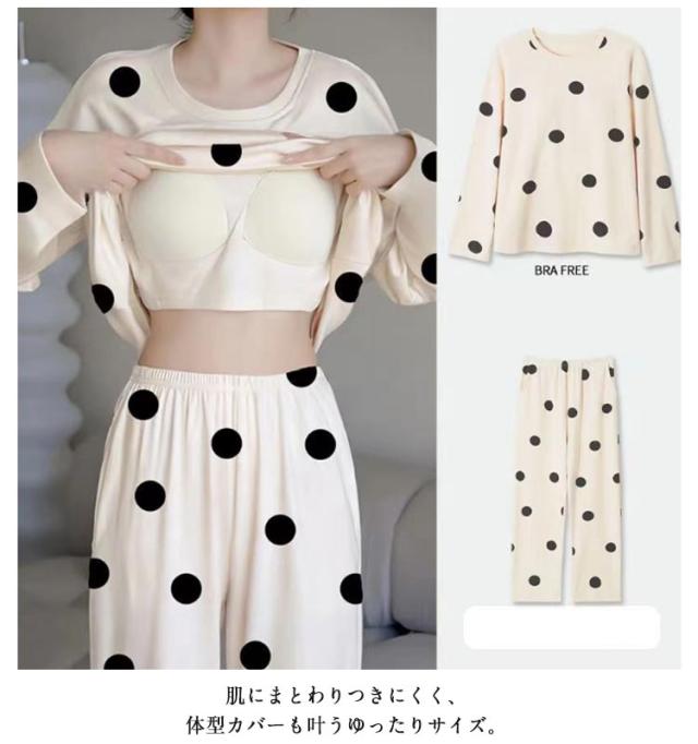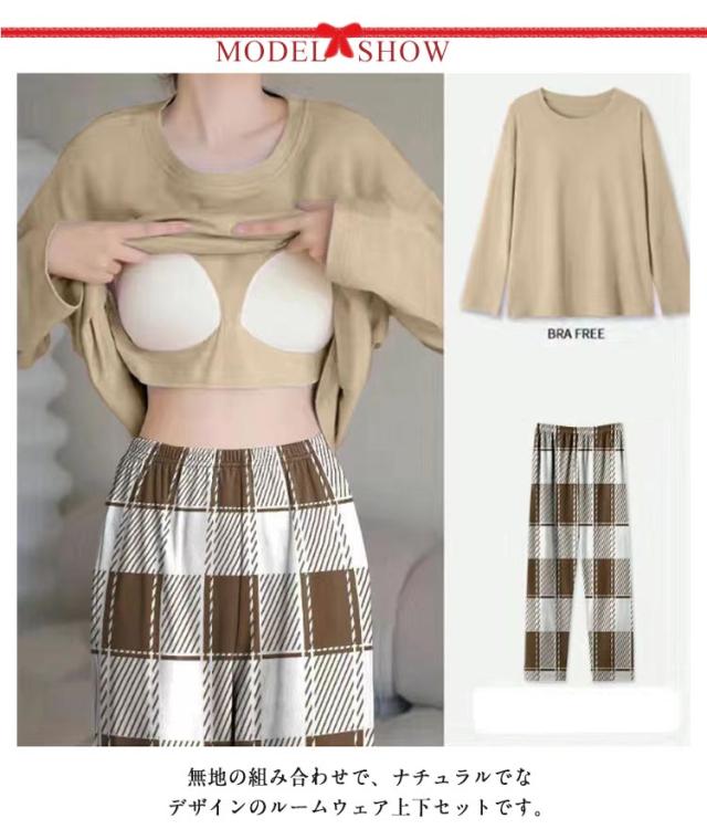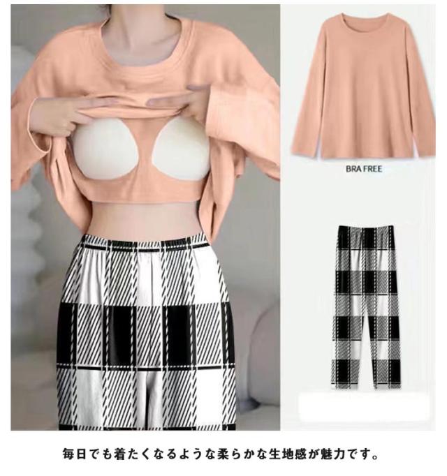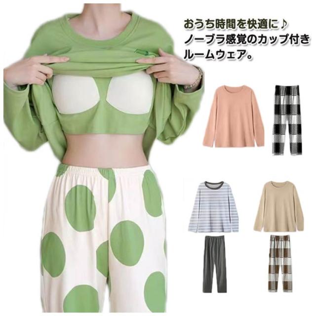 パジャマ レディース カップ付きでリラックス 長袖 ルームウェア 秋 冬 カップ付き ナイトウェア ロングパンツ 春 夏 秋 冬 寝間着 ナイトウエア 着心地 部屋着 入院 産後 大人 ロンT カップ 胸カップ 大きいサイズ 送料無料
