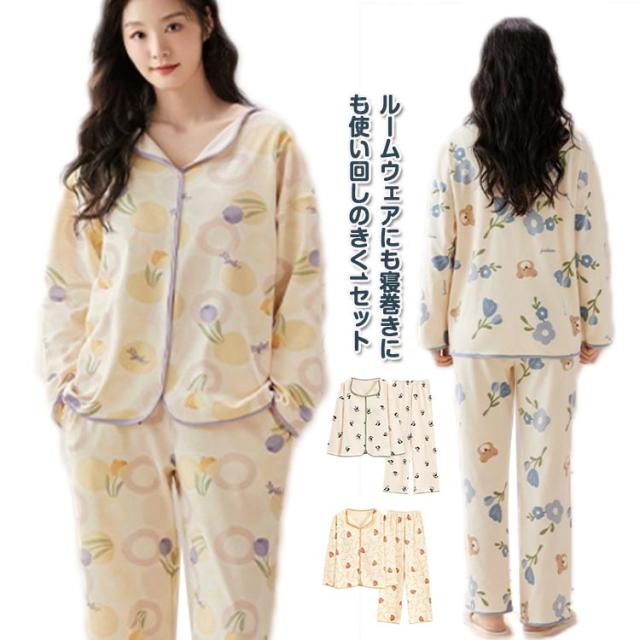 パジャマ レディース ルームウエア 部屋着 カップ付き 寝巻き 肌触り 柔らかい 着心地 セットアップ 可愛い 前開きパジャマ 前開き パッド付き 長袖 秋冬 ナイトウエア 入院 産後 吸汗 通気 着心地 長袖 母 母の日 プレゼント 送料無料