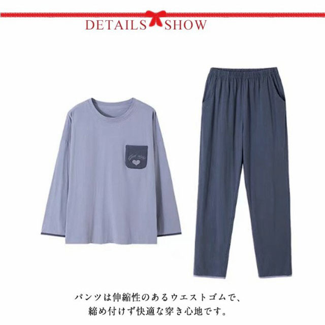 | カップ付きなので1枚でさらりと着用できます。 パンツは伸縮性のあるウエストゴムで、締め付けず快適な穿き心地です。 ゆったりシルエットで体型カバーもばっちり。 おしゃれなデザインのルームウェアなので、普段着、部屋着 寝間着、ホテル、旅行など多様にお使いいただけます。 | |
