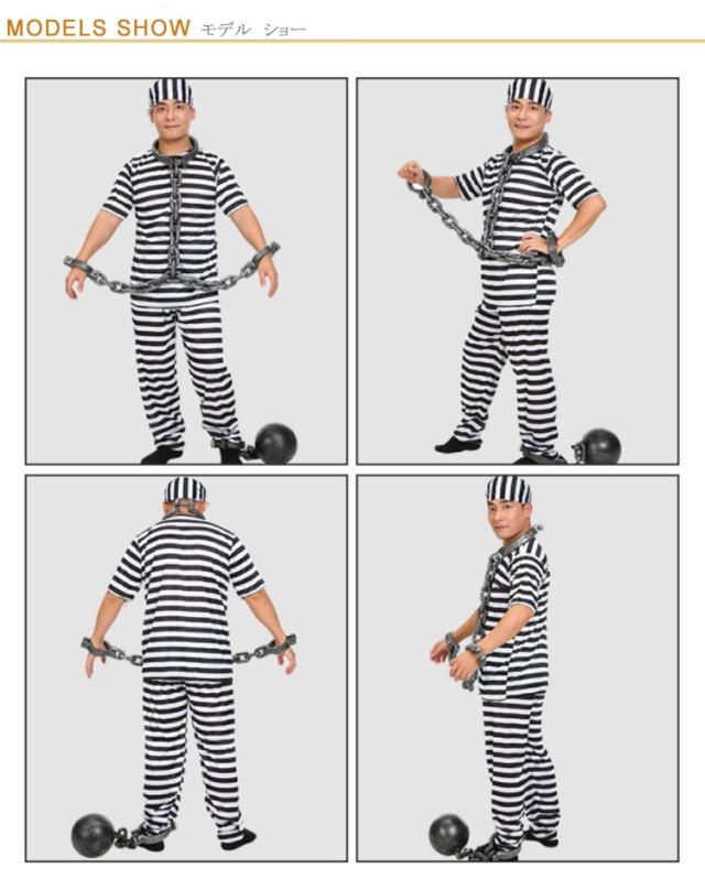 | ハロウィンをクールに決めろ 定番の囚人服3点セット ハロウィンや、イベント、パーティーで目立つ事間違いなし! ゆったり簡単にコスプレができるから便利で大人気, ハロウィンはもちろんイベント、学芸会、余興等にもご活躍頂けます。 | |
