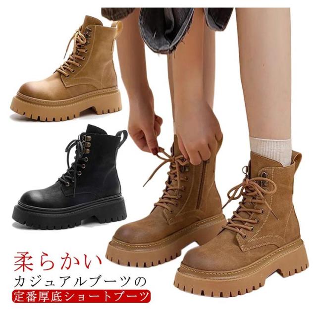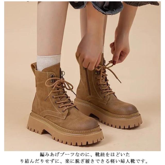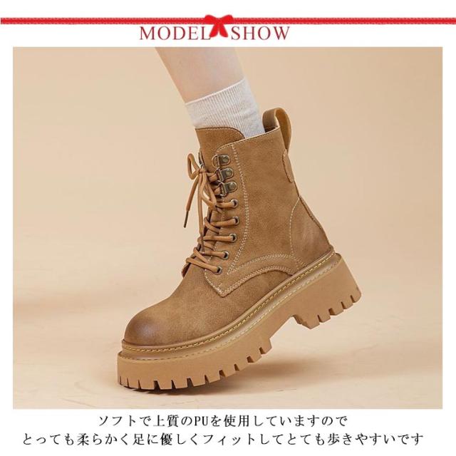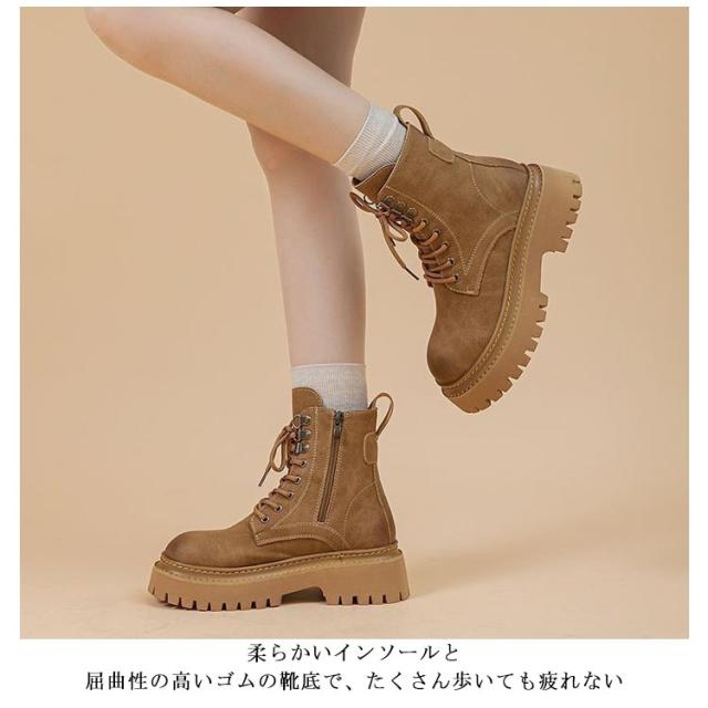 ブーツ レディース 厚底 ショートブーツ 秋冬 ワークブーツ 歩きやすい 編み上げブーツ 春 合皮 厚底 編み上げブーツ ファスナー 幅広 ローヒール 晴雨兼用 足が痛くならない 丈短め 丈夫 長持ち おしゃれ シンプル 甲高 ワイド設計 履きやすい 疲れにくい 送料無料