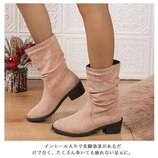 ブーツ レディース ショートブーツ スエード靴 秋冬 スエード 靴 シューズ ブーツ 大人 カジュアル ブーティ ローヒール ぺたんこ フラット ローヒール スエード 幅広 靴 軽量 ヒール お洒落 秋冬 美脚 原宿系 送料無料