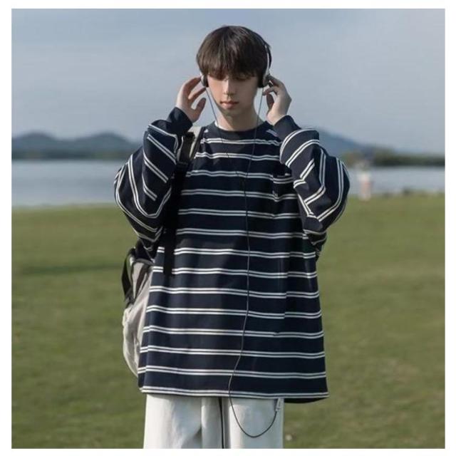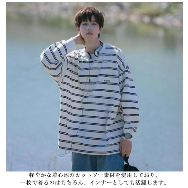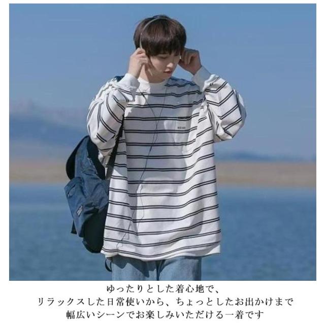 ボーダー ロング丈 tシャツ メンズ レディース トップス ロンt ロングTシャツ カットソー 長袖 クルーネック 白 黒 オーバーサイズ メンズtシャツ 大きいサイズ 服 ゆったり ロンティー インナー ビッグシルエット ストリート カジュアル 送料無料